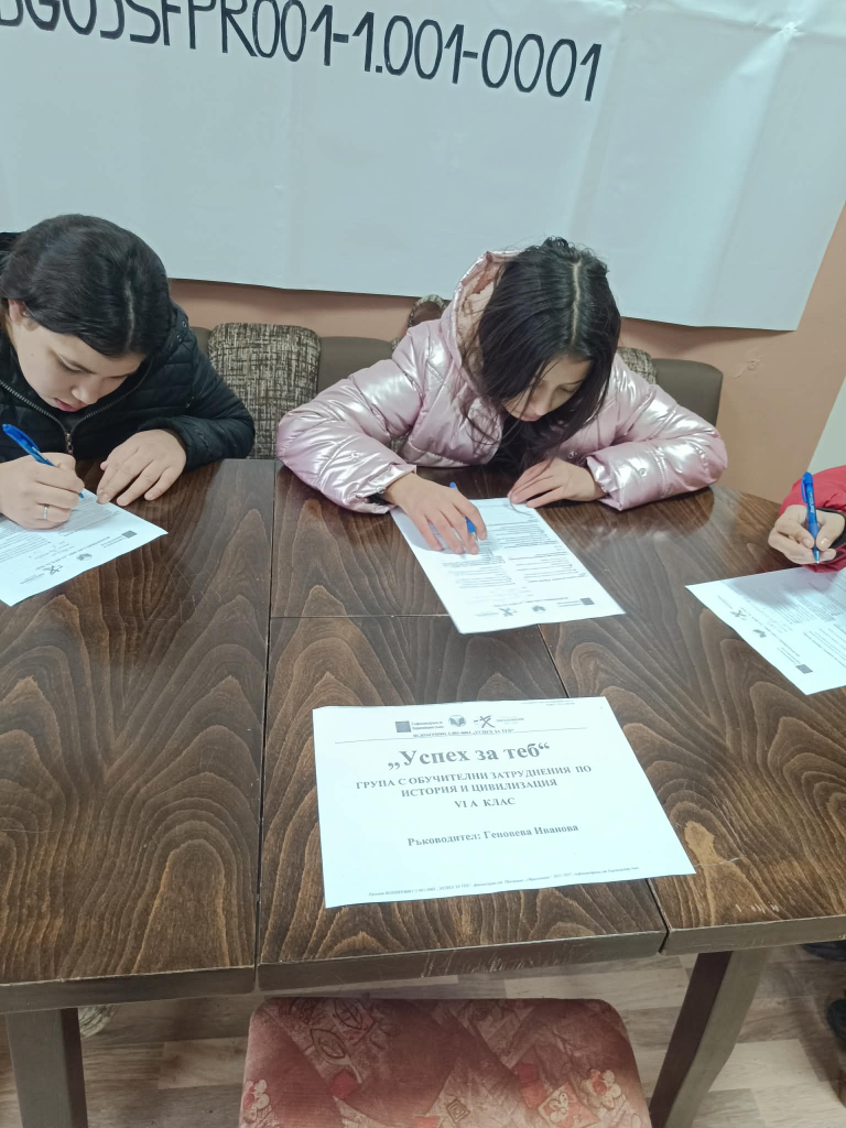 Група по проект „Успех за теб“ с обучителни затруднения по История и цивилизации 6 клас с ръководител Геновева Иванова